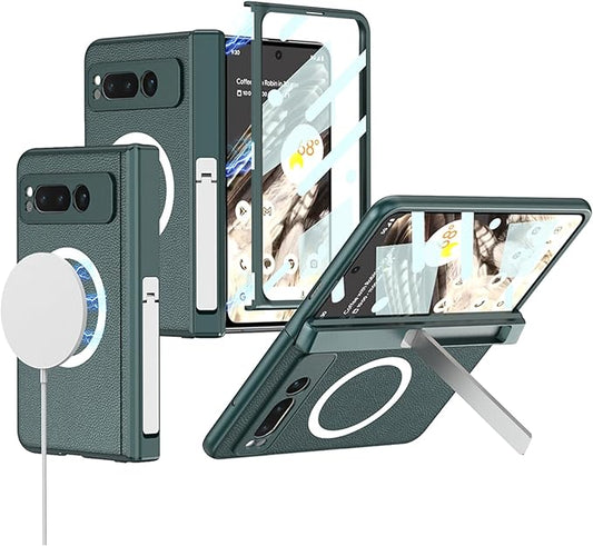 MagSafe Leather Case for Pixel Fold – Hinge & Screen Protection + Invisible Kickstand